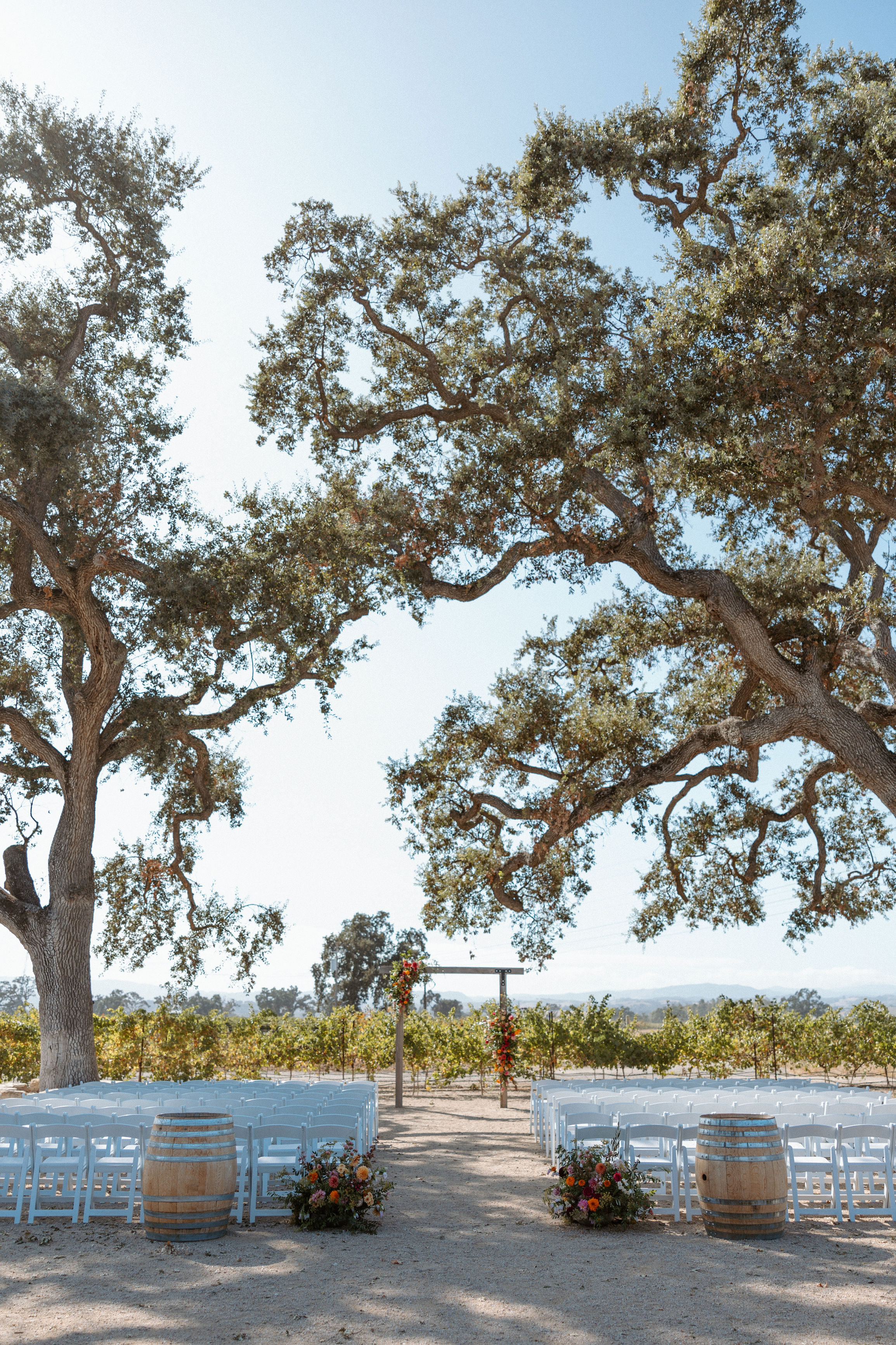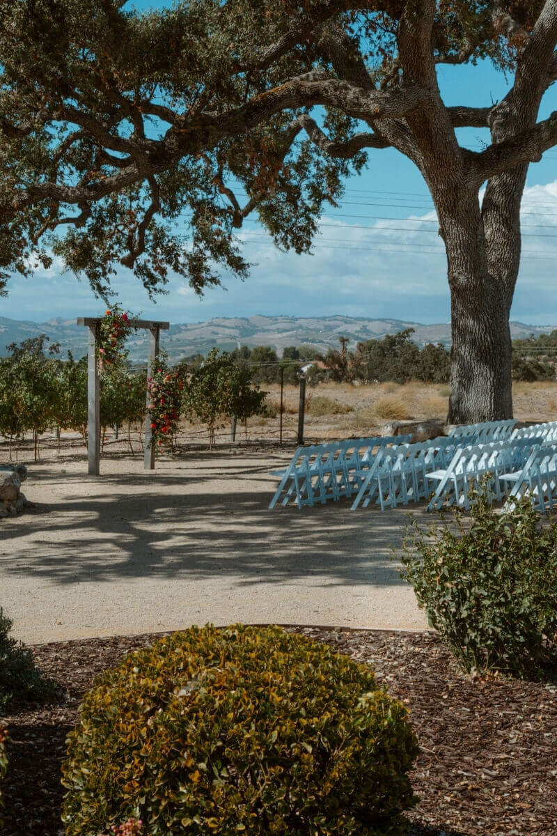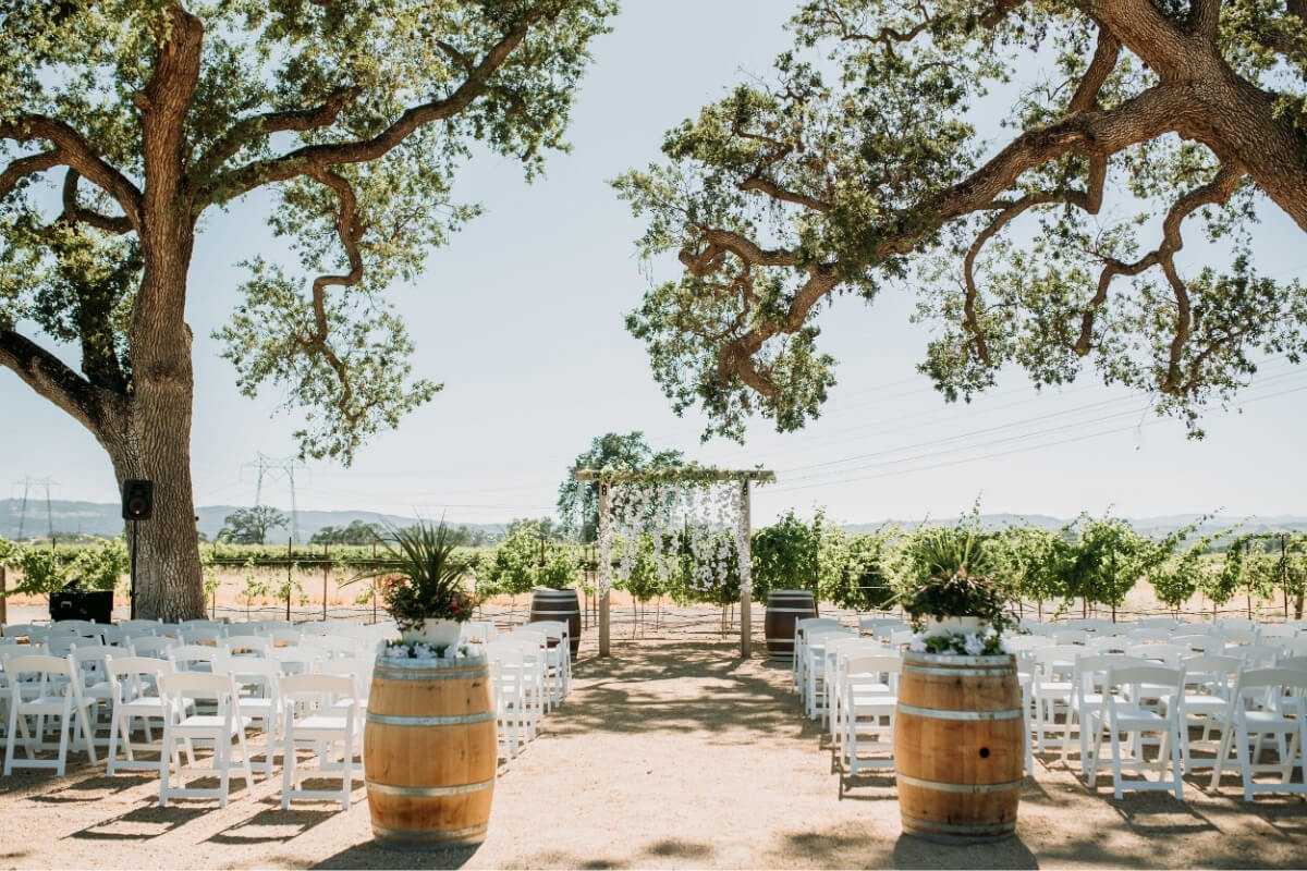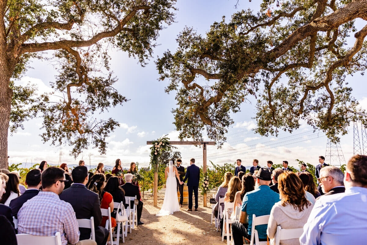 Surrounded by the scenic vineyards and rolling hills, the venue offers a breathtaking natural backdrop. The Majestic oak trees frame the space, adding to its timeless beauty. This combination creates the perfect romantic setting for your wedding celebration.