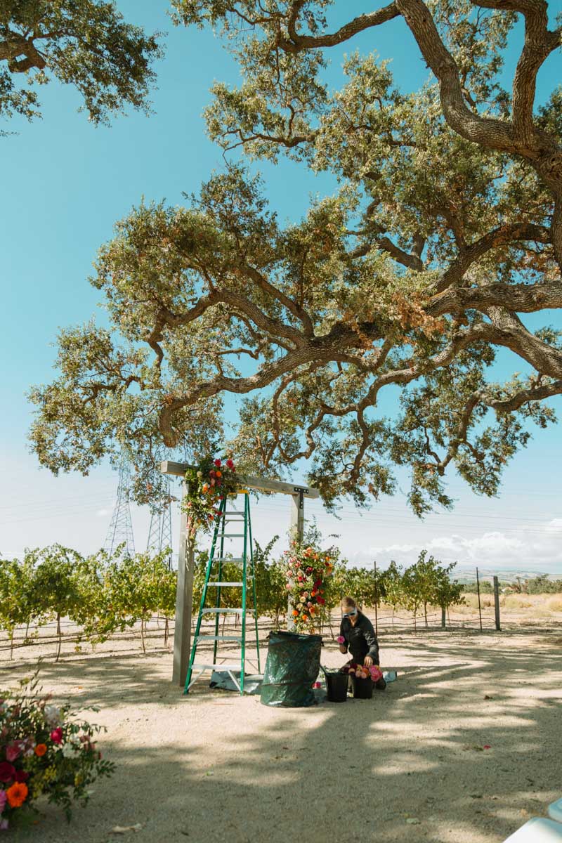 Ceremony site under the oak trees